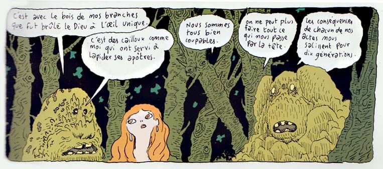 I love the comics of Joann Sfar, which are mostly in french and so when I came across 'L' Ancien Temps' at Renaissance Books in Victoria the other day I had to get it even though I really can't understand a lot of the text itself, since I've only every had a French level 1 class... which I actually took just so I could read another favorite comic of mine only available in french... But I think it's great to get picture books in languages you don't understand sometimes, especially comics so that you can still read them but make up your own story as you do. It can be really fun, and not only that, it makes you pay double attention to things like composition, layout, and of course COLOUR, because all of a sudden you aren't 100% drawn in by the story and those elements don't just vanish more into the background like they usually do.